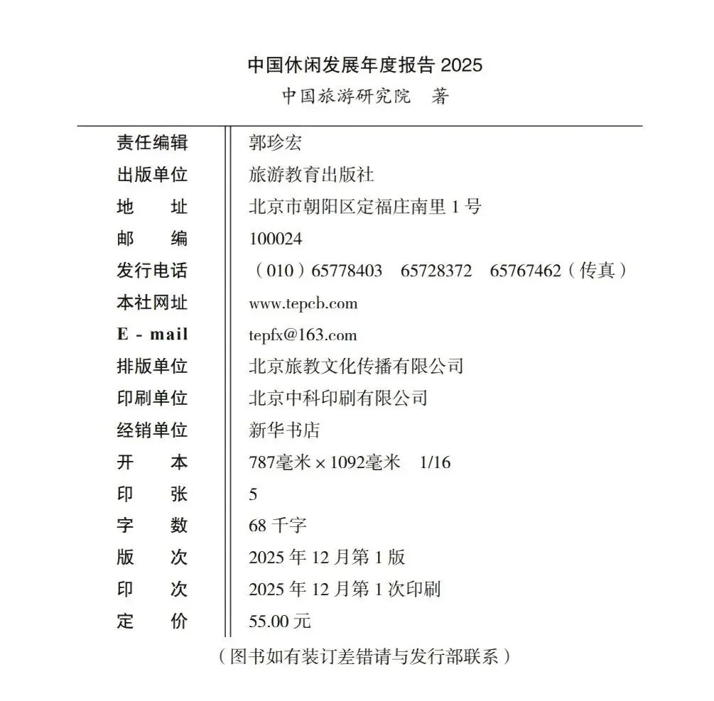 由中国旅游研究院规划与休闲研究所编著的《中国休闲发展年度报告2025》,是中国旅游研究院“1+8”标志性研究成果之一,延续了自2012年以来的持续跟踪研究。报告聚焦国民休闲的时间、空间与内容三大核心维度,系统分析2025年度特征,并结合“十四五”收官与“十五五”开局的关键节点,提出高质量发展建议。