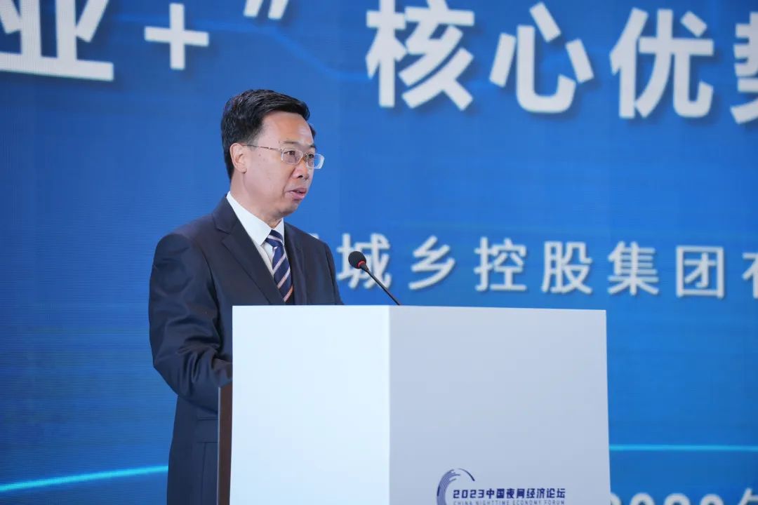 中国城乡控股集团有限公司党委书记、董事长胡国丹作了题为《产业引领、科技赋能、绿色低碳,以“产业+”核心优势助力夜间经济高质量发展》的演讲。