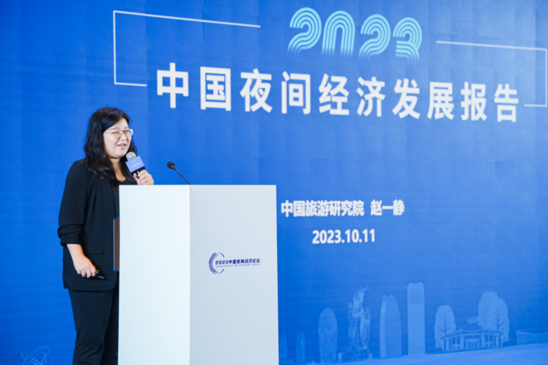 在成果发布环节,中国旅游研究院夜间旅游课题组负责人赵一静博士发布《2023中国夜间经济发展报告》,报告聚焦“这五年,答卷”“这五年,挑战”“2023期待中前行”“2024业态培育与产品创新”四个方面。