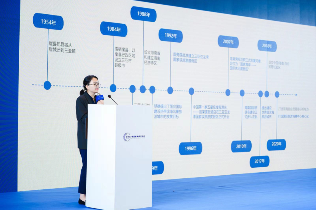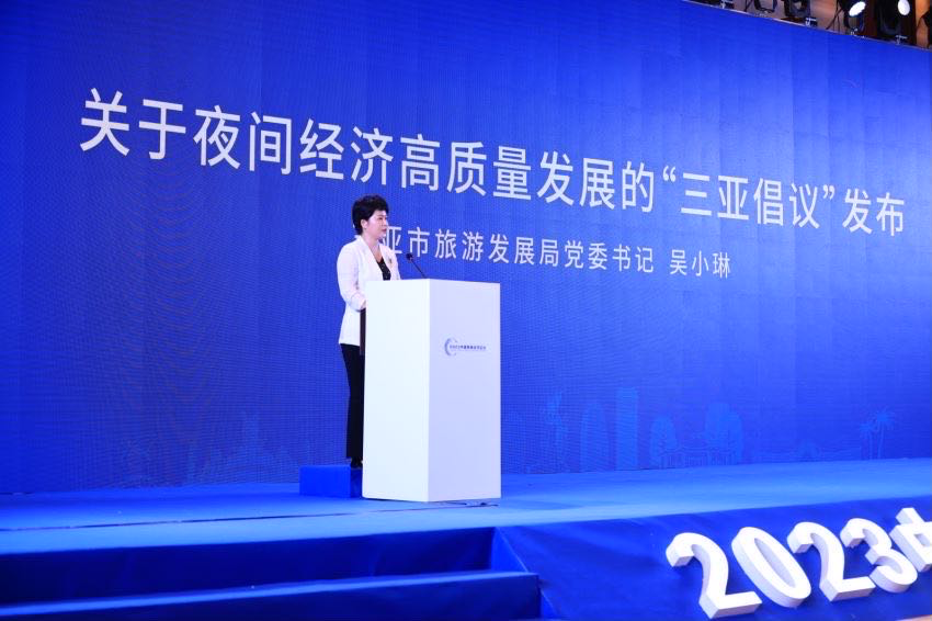 三亚市旅游发展局党委书记吴小琳发布关于夜间经济高质量发展的“三亚倡议”。