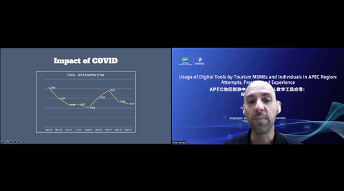 7月19号上午,由亚太经济合作组织(APEC)和中国旅游研究院联合组织的研讨会《旅游中小微企业和个人数字工具应用:探索、实践与经验》(Usage of Digital Tools by Tourism MSMEs and Individuals in APEC Region: Attempts, Practice and Experience)在线上召开。本研讨会是APEC资助项目《旅游业中小微企业和个人如何在新冠疫情危机中生存和恢复:数字工具带来的机遇》(How do MSMEs and individuals in travel and tourism sector survive and recover from the COVID-19: The opportunities from digital tools)的主要研究成果之一,该项目是我国首个正式获得AEPC资助的旅游类项目。此次研讨会旨在促进APEC地区旅游中小微企业和从业者数字工具应用经验的交流与传播,分享各经济体旅游数字化转型的实践经验,并为APEC地区旅游中小微企业和从业者数字工具应用提供培训,促进旅游中小微企业和从业者更好地利用数字化工具,探索在疫情常态化环境下的生存、适应与恢复。