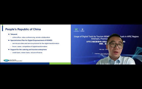 7月21日上午,由亚太经济合作组织(APEC)和中国旅游研究院联合组织的研讨会《旅游中小微企业和个人数字工具应用:探索、实践与经验》(Usage of Digital Tools by Tourism MSMEs and Individuals in APEC Region: Attempts, Practice and Experience)继续顺利进行,当天的研讨主题为“促进旅游业数字化转型的政策”(Policies supporting tourism digitalization)。