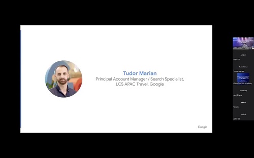 研讨会由中国旅游研究院刘祥艳博士主持,当天的主题为《培训课程-旅游中小微企业和个人的数字化策略》(Training class - Digitalization tactics for tourism MSMEs and individuals)。在专家培训环节,谷歌公司的高级客户经理都铎·玛丽安(Tudor Marian)先生基于谷歌搜索数据的趋势分析,认为国际旅游需求正在显著恢复。在数字化时代的今天,数字化已经嵌入游客行程的方方面面,旅游企业需要紧跟消费行为变化,调整经营策略,其中,数字工具的应用是必不可少的。他着重介绍了谷歌发现广告(Discovery Ad)、动态搜索广告(Dynamic Search Ad)、效果最大化(Performance Max)、翻译活动(Campaign Translator)等推广类数字工具,以帮助包括中小微在内的广大旅游企业更方便、有效地发现、吸引和扩大潜在游客群体。
