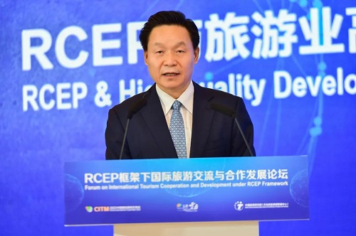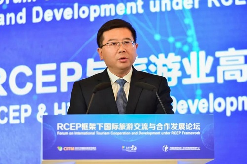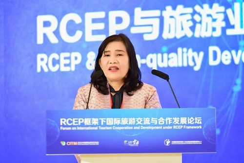 文化和旅游部国际交流与合作局一级巡视员张西龙致辞。《区域全面经济伙伴关系协定》(RCEP)的正式签署和落地为国际旅游交流与合作带来长期利好,也为RCEP成员国带来宝贵发展机遇。中国政府高度重视对外文化和旅游交流工作,我们要充分发掘RCEP政策潜力、持续拓宽合作领域、创新交流渠道、深化务实合作,促进区域旅游一体化,为中国和全球旅游业复苏和经济发展注入新的活力。