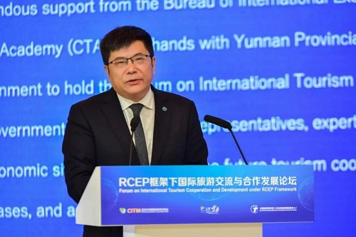 云南省文化和旅游厅厅长赵国良以“RCEP框架下的地方旅游实践”为题发表了主题演讲。一是RCEP及RCEP对旅游业发展的重要意义。RCEP与区域旅游市场紧密相连,对旅游业尤其是出入境旅游,其影响是显而易见的。二是云南参与双边和多边旅游合作的实践。独特的区位优势,再加上较好的旅游发展基础,决定了云南将在RCEP框架下发挥重要作用。亚洲象北上南归的事件,让云南的大好河山、多样生态、多元人文被世界所认知,为云南旅游,特别是生态旅游全球形象树立打下了良好的基础。三是云南参与RCEP初步的一些考虑与打算。 进一步优化发展布局,积极建设大滇西旅游环线、沿边跨境文化旅游带、金沙江生态旅游带、六个国际旅游中心,着力构建“一环、两带、六中心”旅游高质量发展新格局,云南在RCEP区域合作中的作用将进一步凸显。
