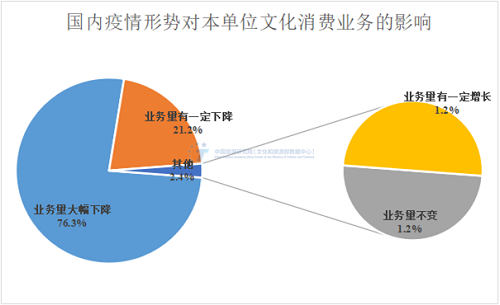 消费需求放缓加上各地从严从紧的防疫措施使得文化消费产业承受更多压力。专项调研数据显示,76.3%的受访企业表示本单位文化消费相关业务规模大幅下降,21.2%的受访企业表示有一定下降。