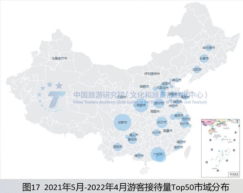热门旅游城市向边远地区分散,客流向头部集中。在散发疫情影响下,全国接待量TOP50的地级市分布由东中部向东北、西北和西南分散,快速复苏的旅游目的地更加分散。同时,旅游热度向头部城市集中,旅游市场阻力呈下沉趋势。数据显示,当前,接待游客前10位城市接待量较2019年底提高4.6个百分点。