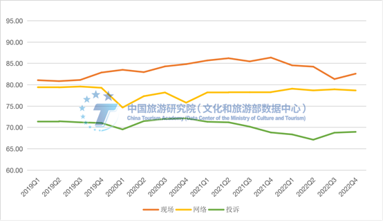 图2: 2019—2022年分季度全国游客满意度现场、网络、投诉指数