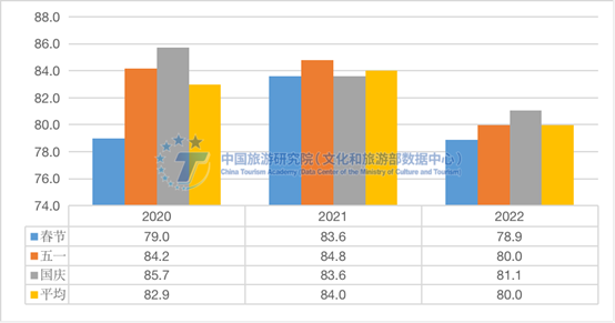 图7:2020—2022年主要节假日全国游客满意度综合指数