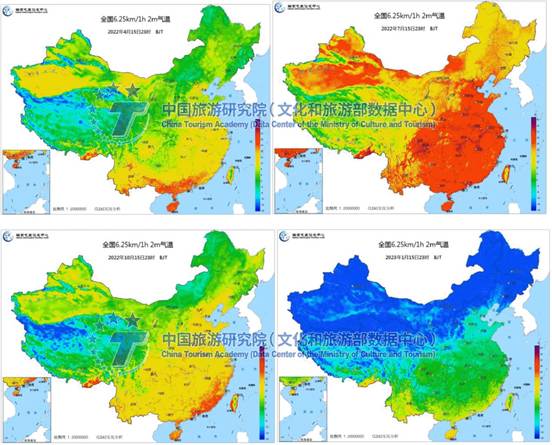 图9. 4月(春)、7月(夏)、10月(秋)、1月(冬)全国气温分布图(来源于:中国气象数据网)