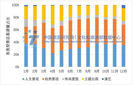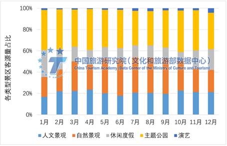 省内游预约指向美好生活,跨省游预约指向美丽风景。西北和西南地区省内游偏好自然景观,华南地区偏好主题公园,其他区域对各类型景区偏好较为均衡。全年省内游预约主题公园的客源占比为38.7%;各月份预约主题公园和人文景观的客源占比较稳定,预约自然景观的客源在5至9月占比最高,预约休闲度假的客源在冬季占比增加。全年跨省游预约自然景观的客源占比为37.8%;6至8月预约自然景观的客源占比超过45%,冬季自然景观预约量占比减少,人文景观和休闲度假占比增加。