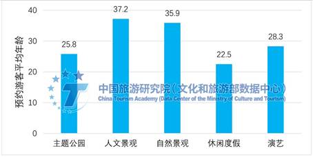 年轻游客喜欢玩,偏好体验感、参与性强的景区;年长游客爱看,更喜欢人文景观和自然景观。休闲度假和主题公园景区更受年轻人喜欢,预约游客平均年龄分别为22.5岁和25.8岁,文旅小镇、漂流、温泉、滑雪、室内和实景演艺、海洋公园、冰雪主题等受到青睐。人文景观和自然景观更受年长游客喜欢,预约游客平均年龄分别为37.2岁和35.9岁。