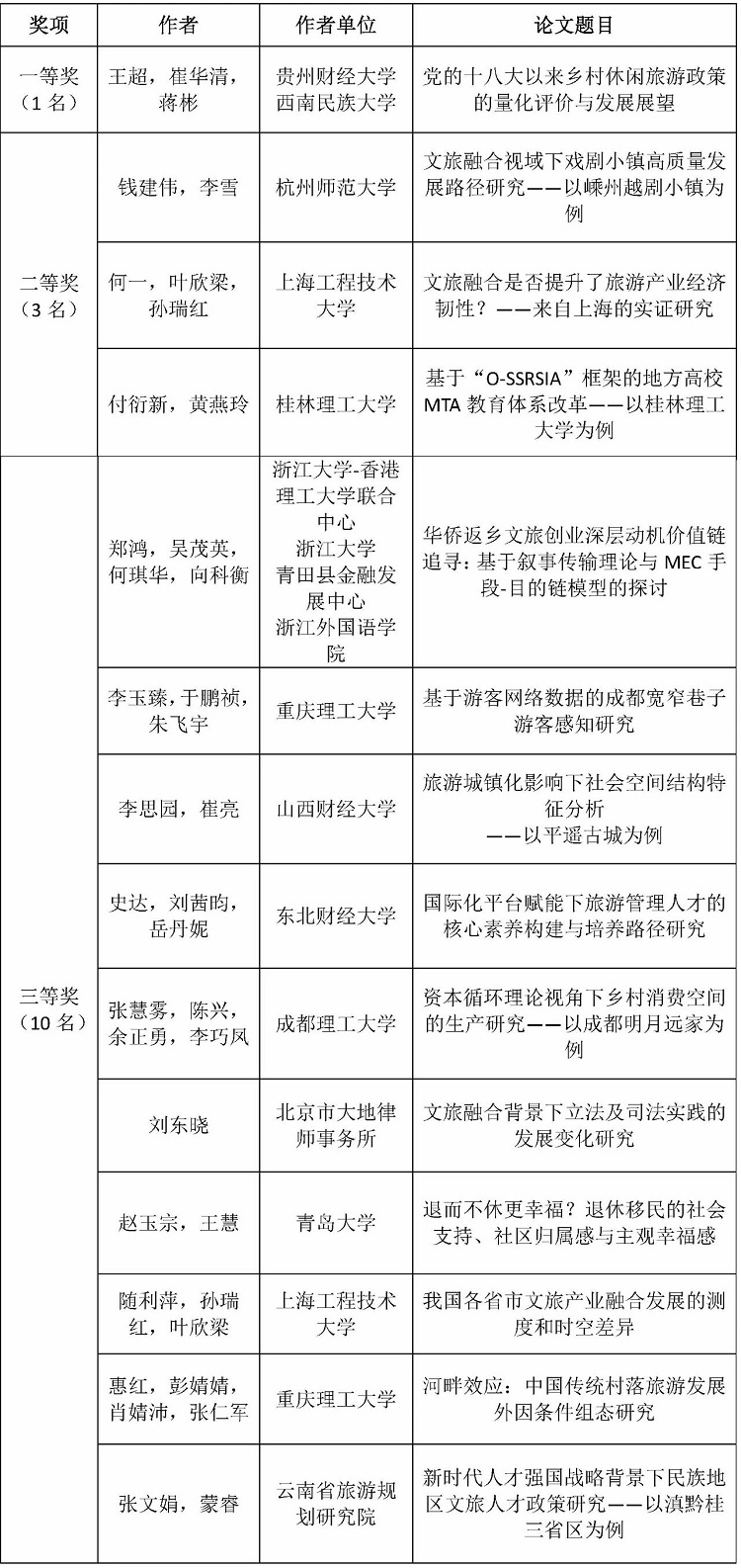 2023中国旅游科学年会收到会议论文90篇。经过专家评审,评出14篇论文优秀论文,一等奖1篇,二等奖3篇,三等奖10篇。现将名单公布如下: