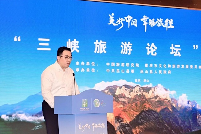 北京交通大学现代旅游研究院院长张辉、中国旅游协会民宿客栈与精品酒店分会会长张晓军、中国旅游集团西南区域总部副总经理曾宁、三峡大学旅游管理系主任、教授阚如良分别发表了《巫山旅游高质量发展的路径》《三峡旅游与民宿发展》《中国旅游集团助力三峡和重庆旅游发展》《三峡旅游演进规律与系统重构》的主题演讲。