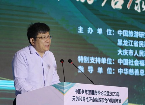 6月27日,由中国旅游研究院、黑龙江省民政厅、大庆市人民政府共同主办的“中国老年康养旅居论坛”在“百湖之城”大庆市成功举办。来自中国旅游研究院、中国社会福利与养老服务协会、中国老龄协会、中华慈善总会、中国宏观经济研究院、中国健康管理协会、中国营养学会、中国卫生经济学会、中国市长协会、中国食文化研究会、中国公益研究院、北京社会管理职业学院、泰康保险集团、全国126个旅居康养联动城市、黑龙江省13个市(地)、黑龙江省首批旅居康养示范基地的领导、专家和企业家齐聚一堂,共商积极应对人口老龄化战略,共谋健康中国建设大计。论坛由黑龙江省民政厅党组书记、厅长董濮主持。