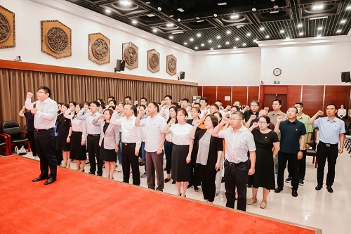 活动开场,戴斌同志带领全体党员庄严面对党旗重温入党誓词,牢记党的初心和使命。