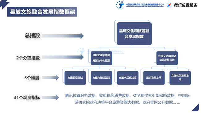 江浙地区文化底蕴丰富,旅游资源禀赋高,居民有钱有闲,满足参与文旅活动的充要条件。江浙地区县域文化和旅游融合发展,一定程度上代表全国文化和旅游融合发展的基本方向。课题组结合江浙地区县域行政单位的人口、生产力、土地面积等因素选择了30个基础发展条件相当的县城作为研究对象,构建由县域文化和旅游发展竞争力和协同发展分项指数组成的县域文化和旅游融合发展总指数框架。