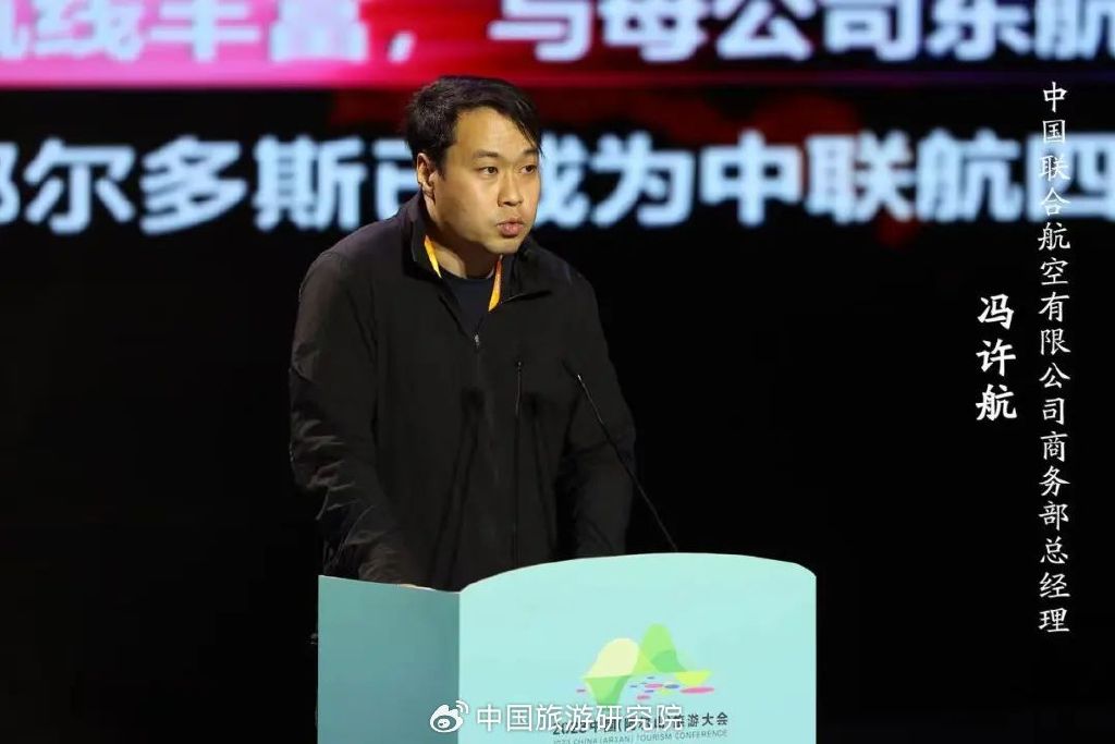 中国联合航空有限公司商务部总经理冯许航以“航旅融合 共谋发展”为题发表了演讲。冯许航以“北方之路”项目为例,从航网布局、产品研发和营销等角度分享了中联航在文旅融合方面的探索,提出了未来的合作与展望。他提到,中联航将拓展北方市场,实现南北串联,提升“一张机票”的价值。