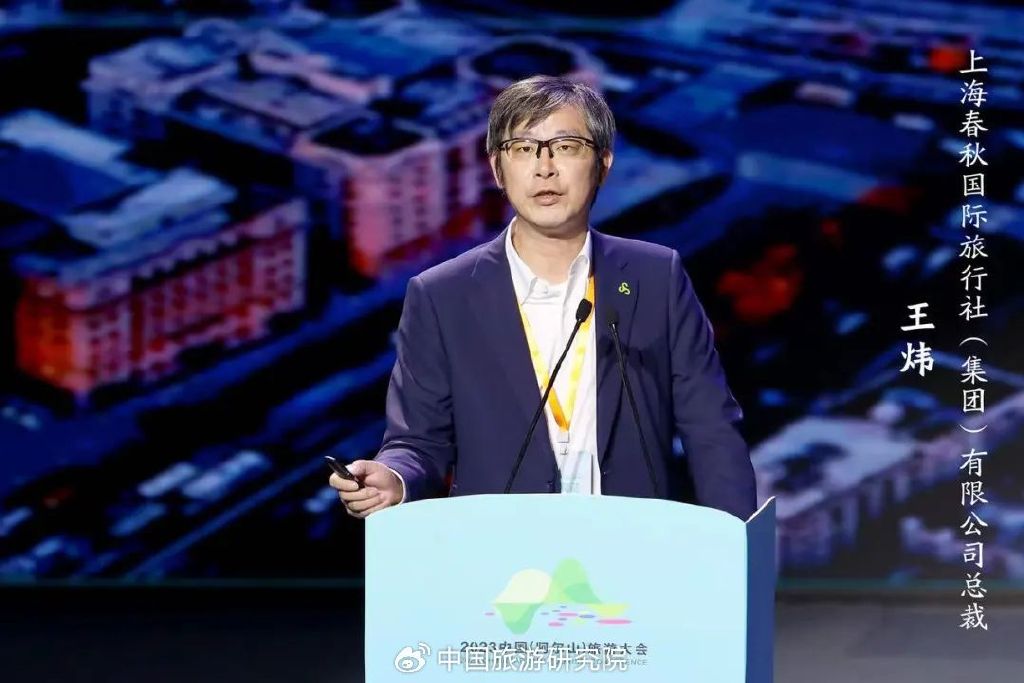 上海春秋国际旅行社(集团)有限公司总裁王炜以“航旅融合 共创文旅新未来”为题发表了演讲。王炜分享了春秋航线建设历程及航旅融合案例,强调航旅融合要聚合政企力量、深挖目的地潜力,提出通过矩阵式营销赋能旅游包机,包括线下实体、活动营销、空地交通等。