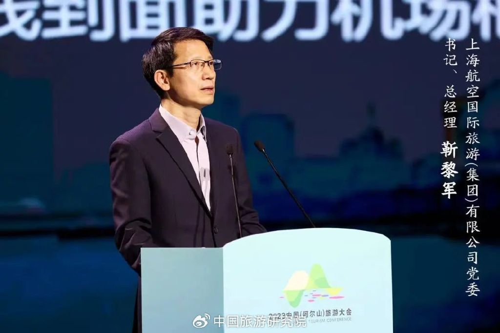 上海航空国际旅游(集团)有限公司党委书记、总经理靳黎军以“航空+文旅 阿尔山旅游发展新赛道”为题发表了演讲。靳黎军指出,航旅融合可为行业引流赋能。他分享了上航从点到线到面到生态圈的航旅融合模式演进,介绍了航旅融合的交通、产品、营销组合拳,以及4.0时代航司与机场、政府成立合资公司的典型案例,提出通过航旅融合助推阿尔山度假目的地建设。