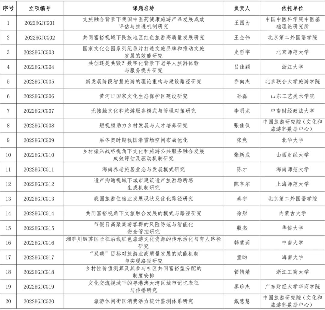 “2022年文化和旅游宏观决策课题立项名单”在2022中国旅游科学年会上发布