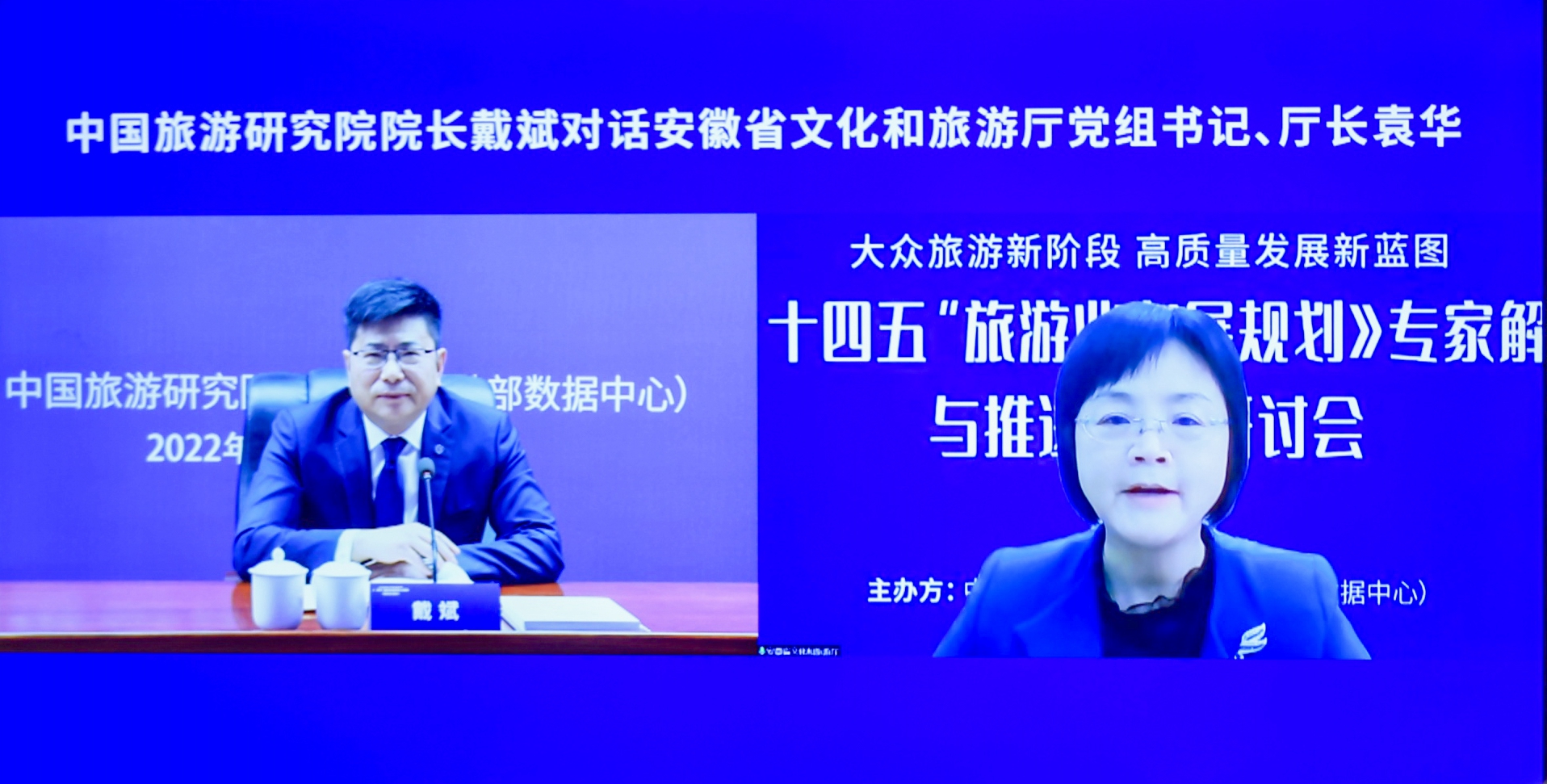 会上,中国旅游研究院院长戴斌与安徽省文化和旅游厅党组书记、厅长袁华进行了“1+1”对话,就大众旅游新阶段的特征、旅游业高质量发展的内涵和路径以及安徽“十四五”旅游业发展规划实施等进行了深入探讨。他们一致认为,地方旅游业发展要和国家旅游业发展规划相衔接,要和地方经济社会发展相衔接,注重发挥市场主体的积极性。