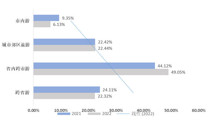 首先,目的地的空间分布呈现大聚集、小分散态势。近程、短途、本地、周边游的热度上升促使旅游目的地区域内循环特征明显,游客出行理性化分散了传统旅游目的地的饱和度,有助于旅游体验感提升。其次,旅游数字化进程加快,游客接受度提升。疫情常态化推动居民行为模式改变。行前预约、扫码刷脸等无纸化入园、电子导游等多种数字化场景正逐渐被大众认可,景区预约体验满意度较往年有所上升。第三,旅游类型趋于多元化。一方面,游客将视线转移至本地和城市周边,各地城市公园、影剧院、都市商圈等当代生活类旅游资源承接本地出游需求。另一方面,冰雪、红色、乡村、研学等专项旅游市场迎来市场新机遇,创新、个性化体验为游客假日出游增添新活力。第四,旅游目的地仍需探索挖掘二次消费。靠景区、景点的门票收入创造旅游收入红利的时代已经过去,引导游客在目的地进行二次消费成为主要探索点,扩充旅游体验和旅游配套设施的丰富度对目的地引流和创造二次消费具有极大的贡献。最后,旅游客群愈发年轻化,品质化、个性化旅游产品备受关注。95后及00后的年轻用户群体迅速崛起,年轻人愈将成为消费市场主力,游客的个性化选择和品质化定制日渐成为风尚,小众、新兴目的地深受年轻人喜爱,“旅游+”将重塑旅游休闲新模式。