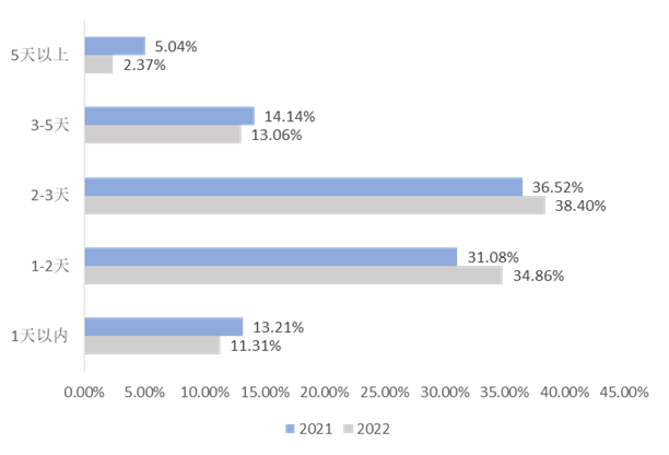 受近程化、本地游影响,居民出游距离和出游时间进一步缩短,专项调查结果显示(图5),选择300公里内出游游客达90%以上,较去年同期上升了3.75个百分点。居民出游时间(图6)集中在1-3天,较去年同期上升3.7个百分点,拼假、错峰出游现象在本次假期未有体现。
