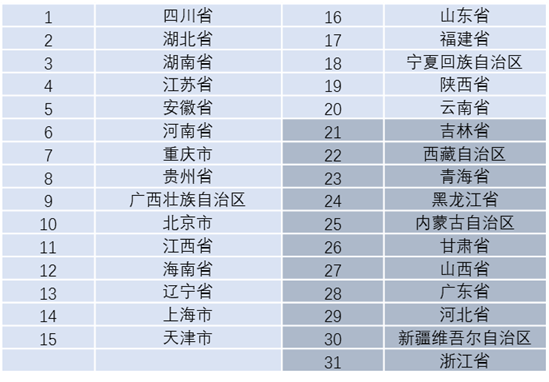 从游客净流入来看(表4),净流入较高省份主要分布在长江流域地区,全国有20个省(市、自治区)为游客净流入,其中四川、湖北、湖南、江苏、安徽各省游客净流入排名靠前,吉林、西藏、青海、黑龙江等11个省(自治区)均为净流出。