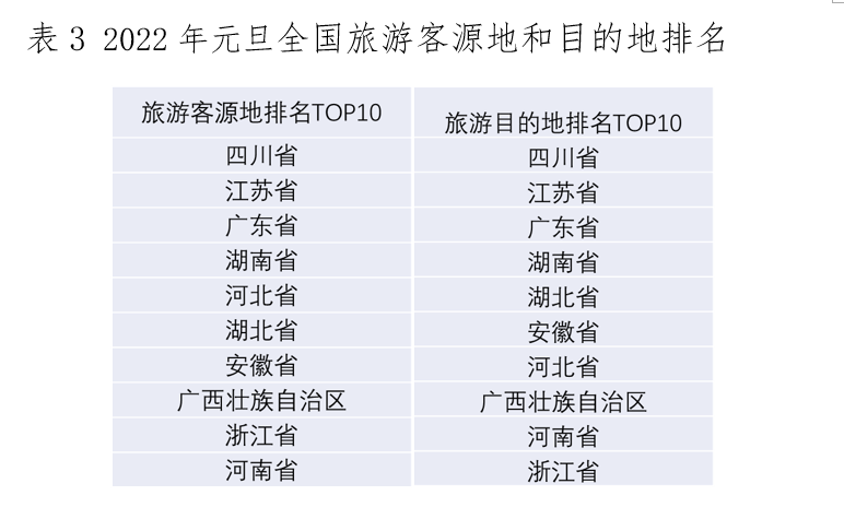 表4 2022元旦假期各省旅游客流净流入和净流出情况