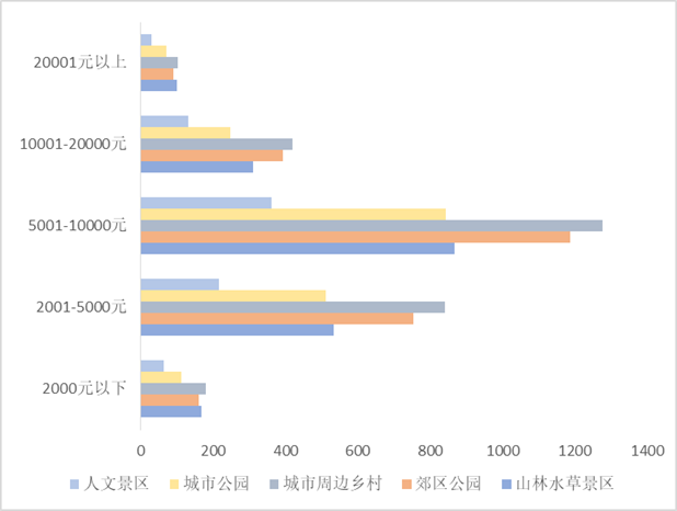 假日游客休闲方式丰富,家庭休闲、亲子研学游为市场主流。调查结果显示(图9),家庭休闲、亲子研学游的比重达62.3%,较去年同期分别上升3.1和5.7个百分点,城市周边乡村和城郊公园的热度较高(图10),对比调查者收入情况和出游选择来看,高收入群体对自然和人文相关景区需求较大(图11)。市场数据显示,上海野生动物园接待游客2.5万人次,海昌海洋公园接待游客1.93万人次,同比增长17.5%,北京环球度假区接待游客5.88万人。成都大熊猫繁育基地接待游客人次较去年同期增长401.43%。主题乐园、海洋公园等亲子相关类旅游目的地市场景气度高,假期市场表现较好,家庭、亲子游同时带动城市周边乡村民宿、客栈热度提升。