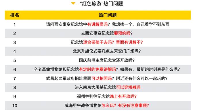 声情并茂的解说,可以显著增强游客互动体验。红色旅游被问最频繁的问题是需要预约吗、如何线上预约、玩多久合适、有没有讲解、开放时间、着装要求、注意事项等实用信息。革命博物馆、纪念馆中的深度讲解可以使得沉寂的故事活化,给游客以强烈和深刻的印象,形成丰富体验和情感共鸣,进而提升学习效果和旅游意愿。当越来越多90后、00后走入红色展馆、红色景区,“声情并茂”地讲解革命先辈的故事更能感染喜爱“沉浸式体验”的年轻人。