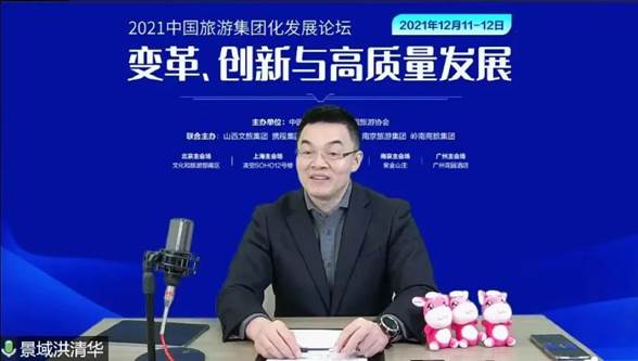洪清华:各位老总、各位同仁,旅游业界的各位新老朋友,大家好,疫情确实显示文旅方面有些方面比较脆弱,同时是很坚韧的,我们都是打不死的小强,并且所有从国家到企业到行业都在深度变革创新和高质量(发展),这是我们这两年的主旋律。景域驴妈妈疫情期间实现了双“+”战略,一个“景域+”,一个“目的地+”。“景域+”疫情下扩大了我们的生活圈,跟更多文旅行业的企业、政府、投资商进行了更紧密的合作,跟文化产业、演艺产业、科技产业,我们有景域体验馆,有了大量创新,我们做了一部手机游上海、一部手机游山西、一部手机游湖北,我们跟湖北鄂旅投合作,都是一种变革和创新。疫情来了过后,整个旅游还是存量市场博弈,一定要进行创新变革,增量市场要进行高质量的发展,景域获得很好的效果。科技改变生活,除了科技应用之外,还有沉浸式的体验,走了好多地方,正如戴院长说的,我今年一半的时间在市场上跑,发现所有地方的领导非常关注旅游还有文旅的发展,并且提出来第一要市场化,要变革,要做年轻人喜欢的城市,并且要求高质量发展。