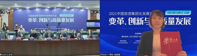 由中国旅游研究院主办,山西文旅集团、携程集团、杭州市运河集团、南京旅游集团、岭南商旅集团联合主办的“中国旅游研究院研究成果发布及青年企业家对话”于12月11日下午在线举行。会上发布了2021中国旅游集团化发展创新案例、文旅融合创新项目和旅游科技创新项目,中国旅游研究院院长戴斌主持“青年企业家对话”环节,与六位青年企业家就青年企业家与旅游高质量发展等问题展开研讨。