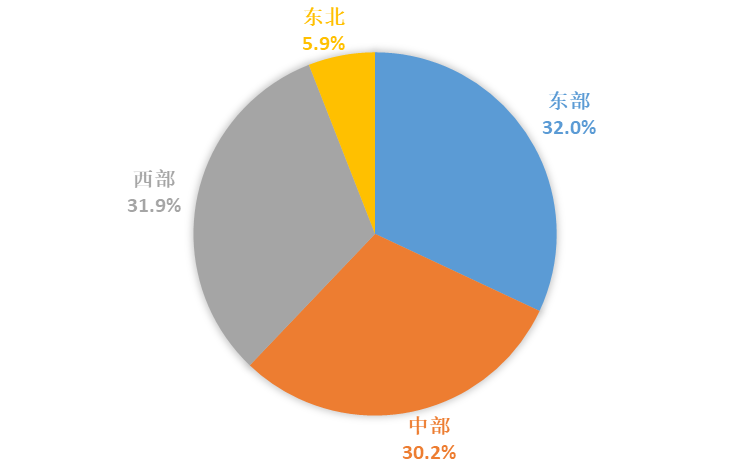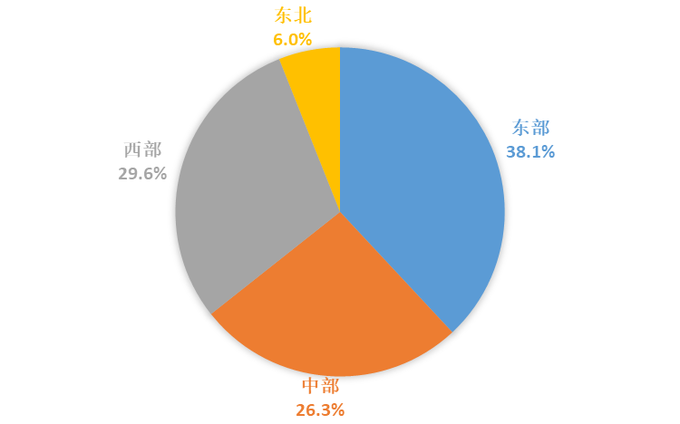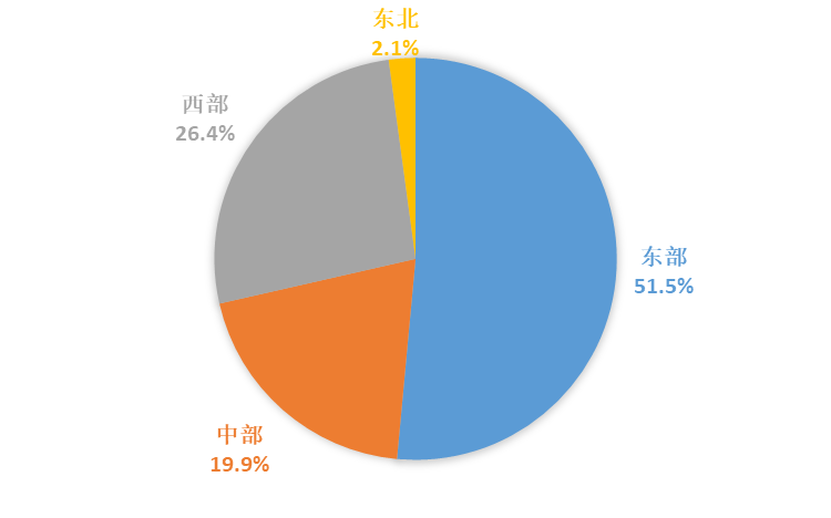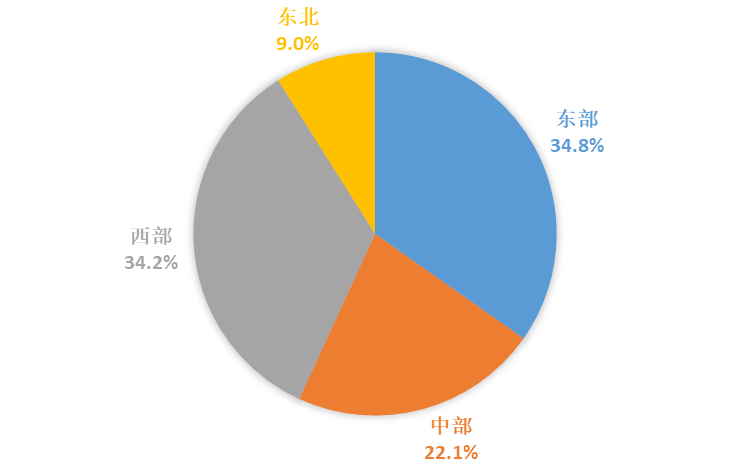 东部区域旅游景区资源最为丰裕,拥有全国34.8%的旅游景区资源。其次是西部区域,拥有全国34.2%的旅游景区资源。中部和东北区域则分别拥有22.1%和9.0%。