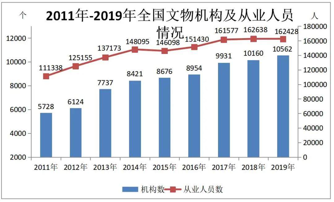 年末全国文物机构拥有文物藏品5130.19万件,比上年末增加166.57万件/套,增长3.4%。其中,博物馆文物藏品3955.38万件/套,占文物藏品总量的78.0%。