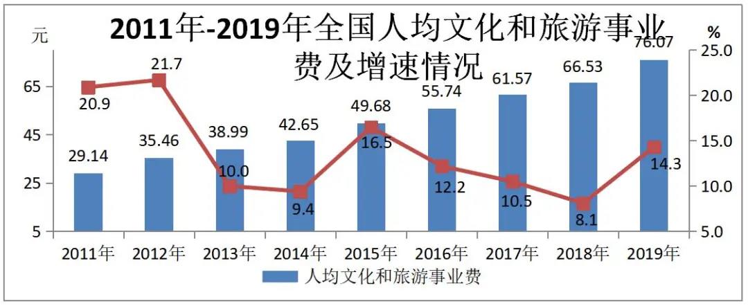 全年全国文化和旅游事业费1065.02亿元,比上年增加136.7亿元,增长14.7%;全国人均文化和旅游事业费76.07元,比上年增加9.54元,增14.3%。