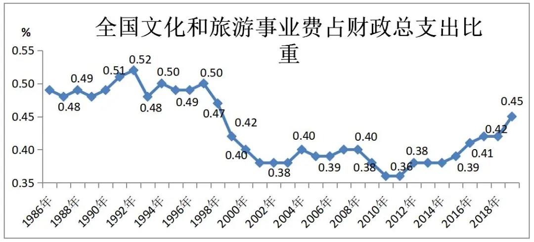 据财政部统计,2019年全国财政支出中,文化旅游体育传媒经费4033亿元,比上年同比增长2.3%,占财政支出的1.69%,比重比上年增长0.10个百分点。