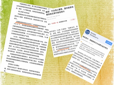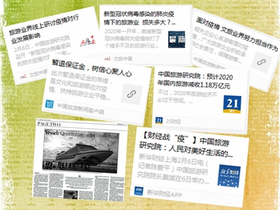 疫情期间,这些研究成果和数据为旅游业注入信心与力量。新华财经、经济日报、人民日报海外版、中国文化报(文旅中国)、中国旅游报(中国旅游新闻)、中国日报、人民网、ChinaDaily、21世纪经济报道、中国网、人民网舆情数据中心、新京报、北京新闻广播、大公网、旅业传媒、千龙网、品橙旅游、劲旅网等20余家媒体发文近40余篇,对会议的成果、观点、数据进行深入报道,引起广泛传播。
