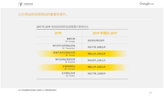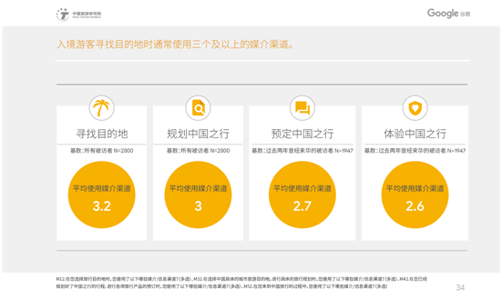 线上渠道在入境游客出行的各个阶段都不可或缺,搜索引擎依然是最主要的信息获取渠道,同时,旅游产品对比网站和视频网站的在过去两年的重要性显著提升。