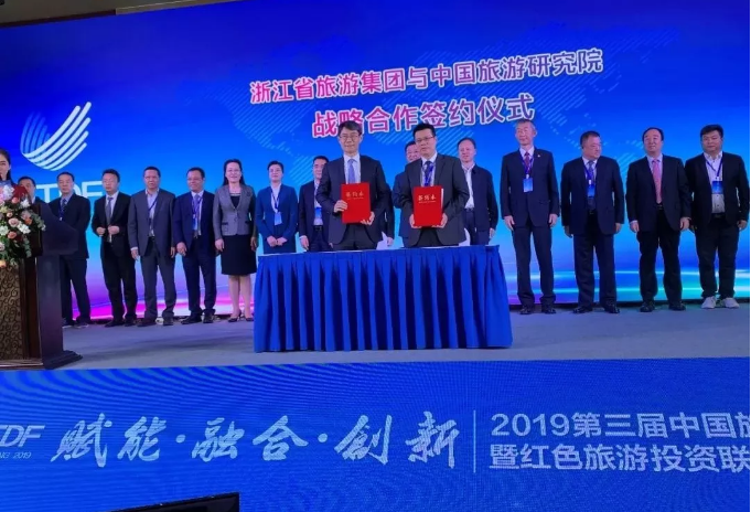 我院副院长李仲广、产业所所长杨宏浩、研究助理卫玉倩博士等参加会议。李仲广副院长结合产学研合作推动旅游集团发展主题进行发言,代表中国旅游研究院与全国省级国有旅游集团联盟签订战略合作协议、与浙江省旅游集团签订战略合作框架协议。根据协议,双方将在共建联盟平台、编制研究报告、开展案例研究、总结经验模式、探索行业实验室和培养企业人才等方面进行战略合作。