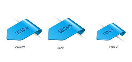 对于旅游频率,50.24%的游客表示每月到乡村旅游一次,其余频次占比均在12%上下浮动。