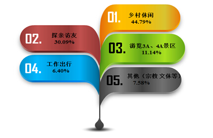 乡村旅游动机调查中,亲近自然、放松身心和与亲友增进情感分别占比32.86%、27.28%和15.07%,合计达到四分之三;亲子游、体验美食、娱乐健身等目的占四分之一。