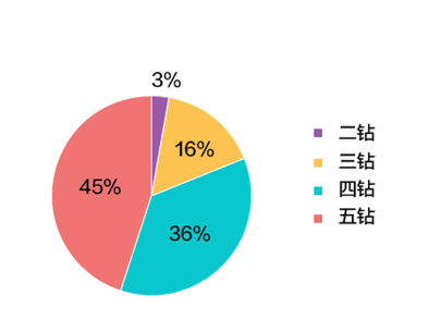 今年网上预订选择4钻、5钻高钻级产品的比例达到8成以上。人气最火的是5钻产品,占到45%。携程5钻产品规定住宿选用五星级的酒店,用车空座率不小于15%,安排当地特色的餐厅就餐等。这意味着国庆游客近半数都会选择入住五星酒店、特色精品酒店甚至庄园古堡。