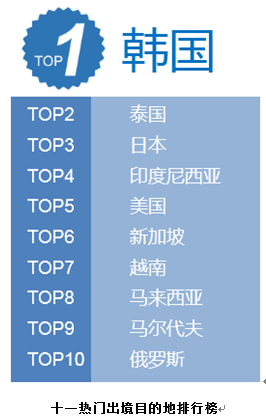 目的地排名:中国人去韩国、泰国、日本最多