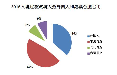 2016全年,入境过夜旅游人数5927万人次,比上年同期增长4.2%。其中:外国人2165万人次,增长6.7%;香港同胞2772万人次,增长2.3%;澳门同胞481万人次,增长3.1%;台湾同胞509万人次,增长5.0%。