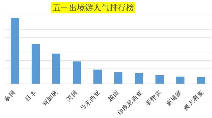 报告显示,“五一”期间,人气最高的前十大出境游目的地国家分别为:泰国、日本、新加坡、美国、马来西亚、越南、印度尼西亚、菲律宾、柬埔寨、澳大利亚。