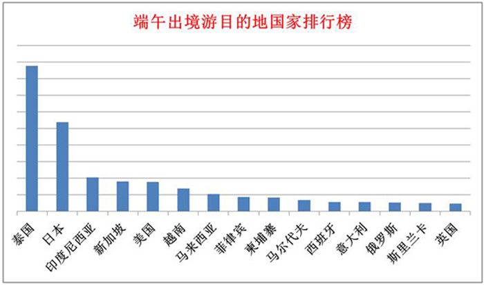 报告显示,“端午”期间,人气最高的前15大出境游目的地国家分别为:泰国、日本、印度尼西亚、新加坡、美国、越南、马来西亚、菲律宾、柬埔寨、马尔代夫、西班牙、意大利、俄罗斯、斯里兰卡、英国。去年排名第一的韩国跌出榜单。泰国跃居第一名。日本也从第三名上升到第二。
