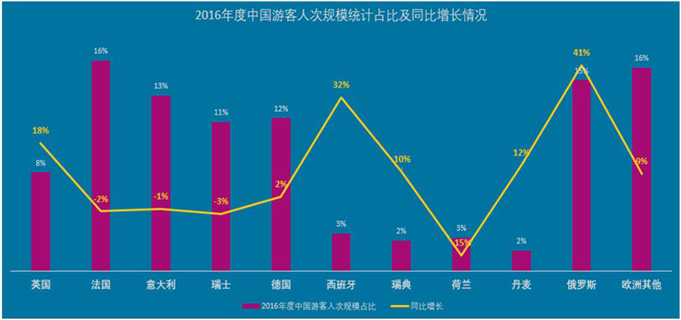 1、2016欧洲游法意瑞市场坚挺,俄罗斯、西班牙和英国成为增长黑马