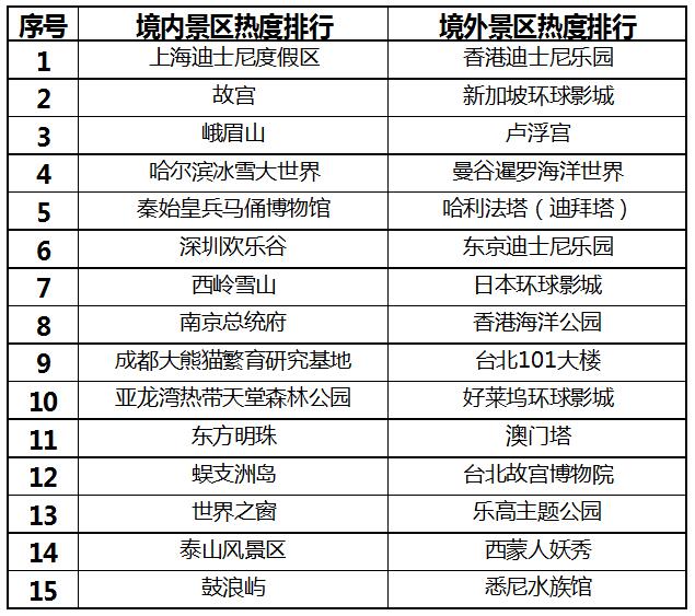 根据携程订单数据,上海迪士尼度假区、故宫、峨眉山获得境内人气景区前三甲,境外最受中国游客欢迎的景点则是香港迪士尼乐园、新加坡环球影城和卢浮宫。